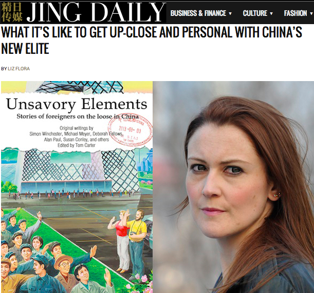 “…Susie Gordon’s essay ‘Empty from the Outside’. This young English journalist arrived in China in 2008 and has been covering China’s business culture for local media. She is one of the newer voices this collection presents, and her expose in Unsavory Elements about the excesses of her wealthy business partner’s second-generation ‘fu er dai’ sons, is a highlight of the book.”